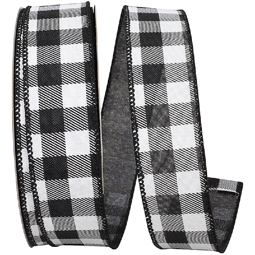 Black and White Buffalo Plaid Gingham Ribbon 1.5" Wide x 25 Yard Roll