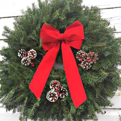 We upgraded our best-selling traditional holiday wreath design. This Fresh Door Wreath comes with 3 clusters of Norway pine cones (white-tipped), red faux berries, and our hand-tied red velvet bow. This Christmas wreath would make a great gift or front porch decoration. Shipping to the lower 48 states is included in this price. We DO NOT ship to Alaska, Hawaii, or to ANY PO Boxes. We MUST have a STREET address. Please call or text our office with questions regarding shipping at 218-259-9515. Weight: About 4 Pounds Diameter: 24" (can vary up to 2") Qty. 1 Made in Minnesota