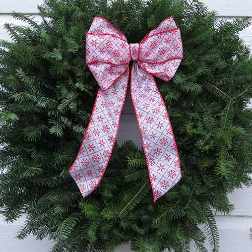 This Fresh Minnesota Balsam Fir Wreath Comes With a handmade snowflake-themed bow. This is a simple cost effective wreath, but additional decorations can be added by the recipient if they desire. Shipping to the lower 48 states is included in this price. We DO NOT ship to Alaska, Hawaii, or to ANY PO Boxes. We MUST have a STREET address. Please call or text our office with questions regarding shipping at 218-259-9515. Weight: About 4 Pounds Diameter: 24" (can vary up to 2") Qty. 1 Made in Minnesota
