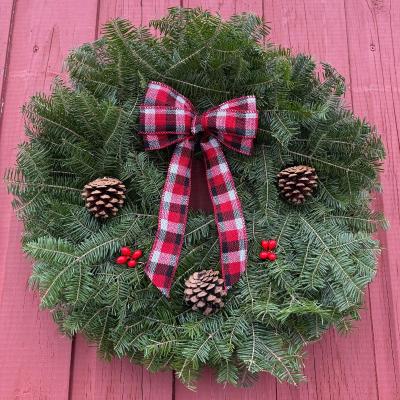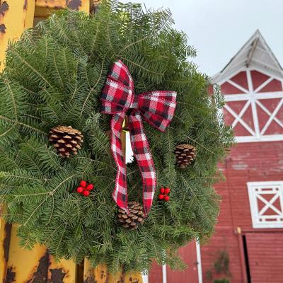 NEW FOR 2025 Launching our 18" Homestead Christmas Plaid balsam fir wreath. Handmade at our family farm in northern Minnesota. This wreath has a wholesome, down-home ambiance and makes a really nice gift. Qty. 1 Handmade in Minnesota